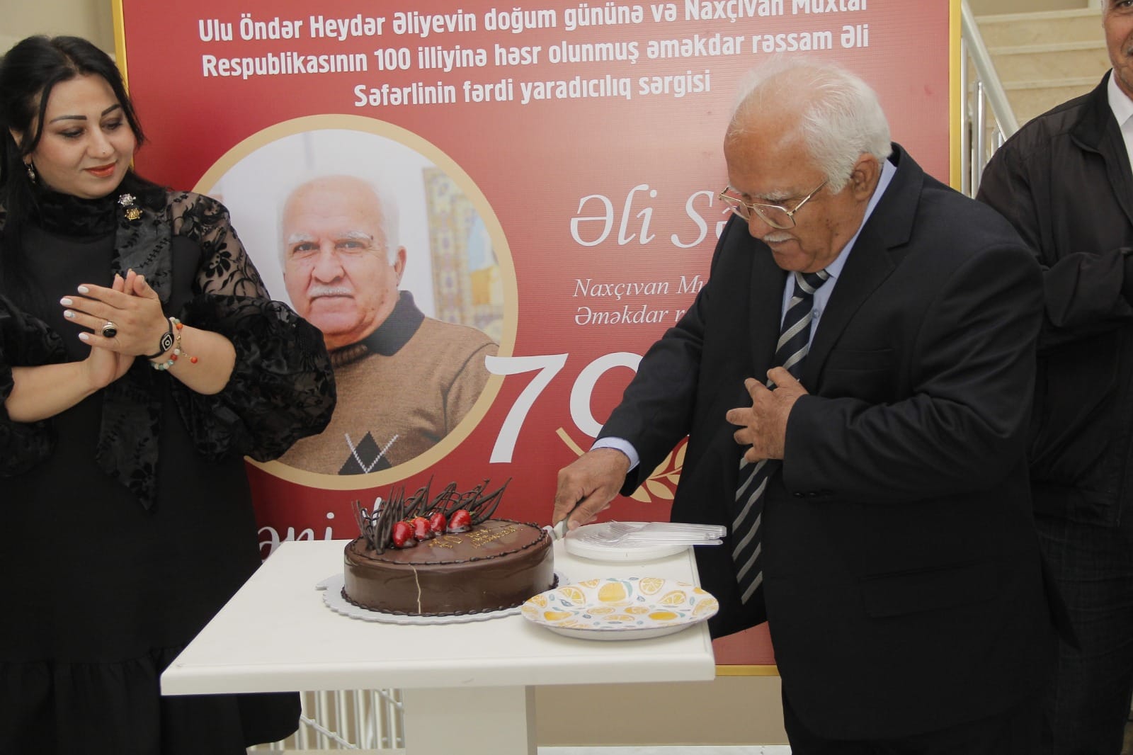 8 may 2024-cü il tarixdə Naxçıvan Muxtar Respublikası Rəssamlar Birliyinin Bəhruz Kəngərli adına Sərgi Salonunda Ulu Öndər Heydər Əliyevin doğum gününə və Naxçıvan Muxtar Respublikasının 100 illiyinə həsr olunmuş Naxçıvan Muxtar Respublikasının Əməkdar rəssamı Əli Səfərlinin 70 illik yubileyi ərəfəsində fərdi yaradıcılıq sərgisi təşkil olunub. Tədbir başlamazdan öncə Ümummilli Lider Heydər Əliyev və şəhidlərimizin, eləcə də dünyasını dəyişmiş rəssamlarımızın əziz xatirəsi bir dəqiqəlik sükutla yad edilib. Öncə, AMEA-nın prezidenti İsa Həbibbəylinin video təbriki səsləndirilib və Milli Məclisin deputatı, Mədəniyyət Komitəsinin sədri Fazil Mustafanın təbrik məktubu oxunub. Tədbiri giriş sözü ilə Milli Məclisin deputatı, Azərbaycan Respublikasının Əməkdar rəssamı, Naxçıvan Rəssamlar Birliyinin sədri Ülviyyə Həmzəyeva açıb. Bildirilib ki, bu il muxtariyyətinin 100 illiyini qeyd etdiyimiz Naxçıvanımızın inkişafının, tərəqqisinin təməli və Naxçıvan Rəssamlar Birliyinin bünövrəsi Ümummilli Liderimiz Heydər Əliyevin adı ilə bağlıdır. Görkəmli dövlət xadimi Naxçıvanın muxtariyyət qazanmasını dövlətçilik tariximizdə mühüm nailiyyət kimi qiymətləndirirdi. Vurğulanıb ki, 70 illik yubileyi ərəfəsində bu gün fərdi sərgisi təşkil olunan Naxçıvan Muxtar Respublikasının Əməkdar rəssamı Əli Səfərlinin yaradıcılığında Ulu Öndərin çoxşaxəli fəaliyyəti əsas yer tutur. Əli Səfərli həm də doğma Naxçıvanın tarixi abidələrini, əsrarəngiz təbiət gözəlliklərini ustalıqla kətana köçürən rəssamlarımızdan biridir. Sərgidə həmin əsərlərin bir qismi nümayiş olunur. Tədbirdə Naxçıvan Muxtar Respublikasının Mədəniyyət naziri vəzifəsinin müvəqqəti icraçısı, nazir müavini Həsən Seyidov, Naxçıvan Muxtar Respublikasının İnsan Hüquqları üzrə Müvəkkili (Ombudsman) Günay Rzayeva, Babək Rayon İcra Hakimiyyəti başçısının müavini Səbinə Abbasova, Naxçıvan Muxtar Respubliksı Ailə, Qadın və Uşaq Problemləri üzrə Dövlət Komitəsinin sədr müavini Aytən Məmmədova, “Əcəmi” Nəşriyyat-Poliqrafiya Birliyinin direktoru Pərvin Məmmədov, Azərbaycan Yazıçılar Birliyinin üzvü Təranə Arifqızı rəssamın çoxsahəli yaradıcılığından bəhs ediblər. Əli Səfərli tədbirdə çıxış edərək təşkilatçılara minnətdarlığını bildirib. Sonra sərgiyə baxış olub. Qeyd edək ki, 45 əsərin yer aldığı sərgi bir həftə davam edəcək. Yazı: Aida Ibrahimova Foto: Araz Xudiyev və sərginin təşkil olunmasında iştirak edən hər kəsə, Rəssamlar Birliyinin əməkdaşlarına, təşəkkür edirik