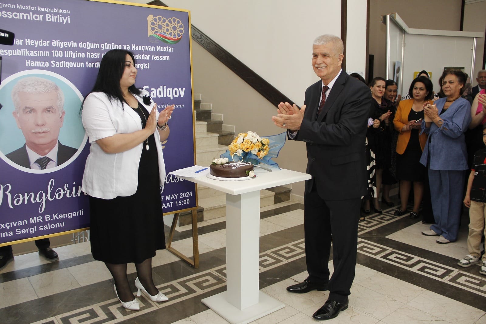 Əməkdar rəssam Həmzə Sadiqovun 75 illiyi münasibətilə fərdi yaradıcılıq sərgisi açılıb Mayın 17-də Naxçıvan Muxtar Respublikası Rəssamlar Birliyinin Bəhruz Kəngərli adına Sərgi Salonunda Əməkdar rəssam Hemze Sadiqov 'un 75 illiyi münasibətilə fərdi yaradıcılıq sərgisi açılıb. Ulu Öndər Heydər Əliyevin anadan olmasının 101, Naxçıvan Muxtar Respublikasının yaranmasının 100 illiyinə həsr olunmuş “Rənglərin harmoniyası” adlı sərgidə əvvəlcə Ümummilli Liderimizin və şəhidlərimizin xatirəsi bir dəqiqəlik sükutla yad edilib. Naxçıvan Muxtar Respublikası Rəssamlar Birliyinin sədri Ülviyyə Həmzəyeva rəssamın həyat və yaradıcılığından bəhs edib, Milli Məclisin Mədəniyyət Komitəsinin sədri Fazil Mustafanın və komitə üzvlərinin təbriklərini çatdırıb. Naxçıvan Muxtar Respublikası Ali Məclisinin sədr müavini Anar İbrahimov yubilyarı təbrik edərək bildirib ki, Əməkdar rəssam Həmzə Sadiqovun taleyi, həyatı həmişə vətənə bağlı olub. Bunu təkcə yaradıcılığında deyil, çalışdığı vəzifələrdə, fəaliyyətində də hər zaman sübut edib. Həmzə Sadiqovun ailəsi ilə birlikdə ötən əsrin 90-cı illərində Ulu Öndər Heydər Əliyevin müstəqilliyimizin möhkəmləndirilməsi, ölkəmizin davamlı inkişafı, xalqımızın rifahı naminə apardığı mübarizənin ön cərgələrində olduğunu diqqətə çatdıran Anar İbrahimov Sədərək döyüşlərindəki fədakarlıqlarını yüksək qiymətləndirib, bu mövqeyə görə yubilyara və onun ailəsinə təşəkkür edib. Həmzə Sadiqovun yaradıcılığını təhlil edən Ali Məclisin sədr müavini Əməkdar rəssamın realizm üslubunda yaratdığı əsərlərin Naxçıvana yeni bir baxışla baxmağa böyük imkan yaratdığını bildirib. Anar İbrahimov rəssamın yaradıcılığından hələ çox gəncin ilham alacağına əminliyini ifadə edib, Həmzə Sadiqova yeni yaradıcılıq uğurları arzulayıb. Sonra yubilyara Naxçıvan Muxtar Respublikası Rəssamlar Birliyi adından təşəkkürnamə təqdim olunub. Tədbirdə Naxçıvan Dövlət Universitetinin rektoru Elbrus İsayevin, Türkiyə Respublikasının Naxçıvan Muxtar Respublikasındakı baş konsulu Asip Kayanın, Naxçıvan Müəllimlər İnstitutunun rektoru Azad Novruzovun, Milli Məclisin deputatı Cəbi Quliyevin, Azərbaycan Həmkarlar İttifaqları Konfederasiyasının sədr müavini, Naxçıvan Muxtar Respublikası Həmkarlar İttifaqları Şurasının sədri Qəzənfər Abdullayevin, Naxçıvan Muxtar Respublikası Yazıçılar Birliyinin sədri Asim Əliyevin, Ailə, Qadın və Uşaq Problemləri üzrə Dövlət Komitəsinin sədri Ramilə Seyidovanın, Memarlar Birliyinin sədri Heydər Əhmədovun və Xalq rəssamı Hüseynqulu Əliyevin çıxışları dinlənilib. Əməkdar rəssam Həmzə Sadiqov əməyinə verilən diqqətə görə minnətdarlıq edib və tədbirin ona yeni yaradıcılıq stimulu verdiyini bildirib. Sonra sərgiyə baxış olub. Sərgidə Əməkdar rəssam Həmzə Sadiqovun müxtəlif janrlarda ərsəyə gətirdiyi 60-a yaxın əsəri nümayiş olunub. Əsərlərdə Naxçıvan motivi üstünlük təşkil edib.
