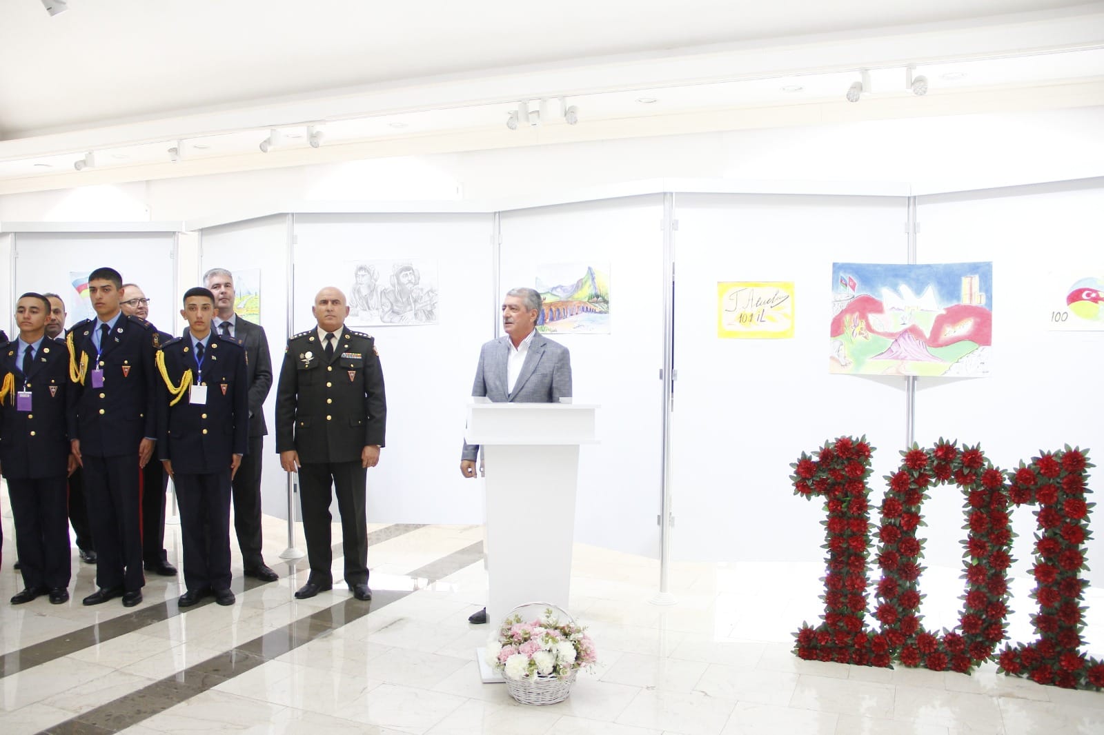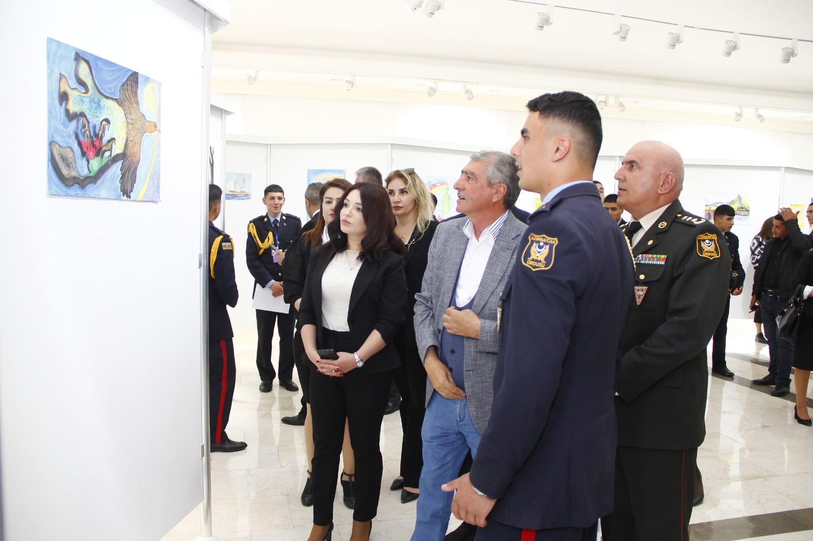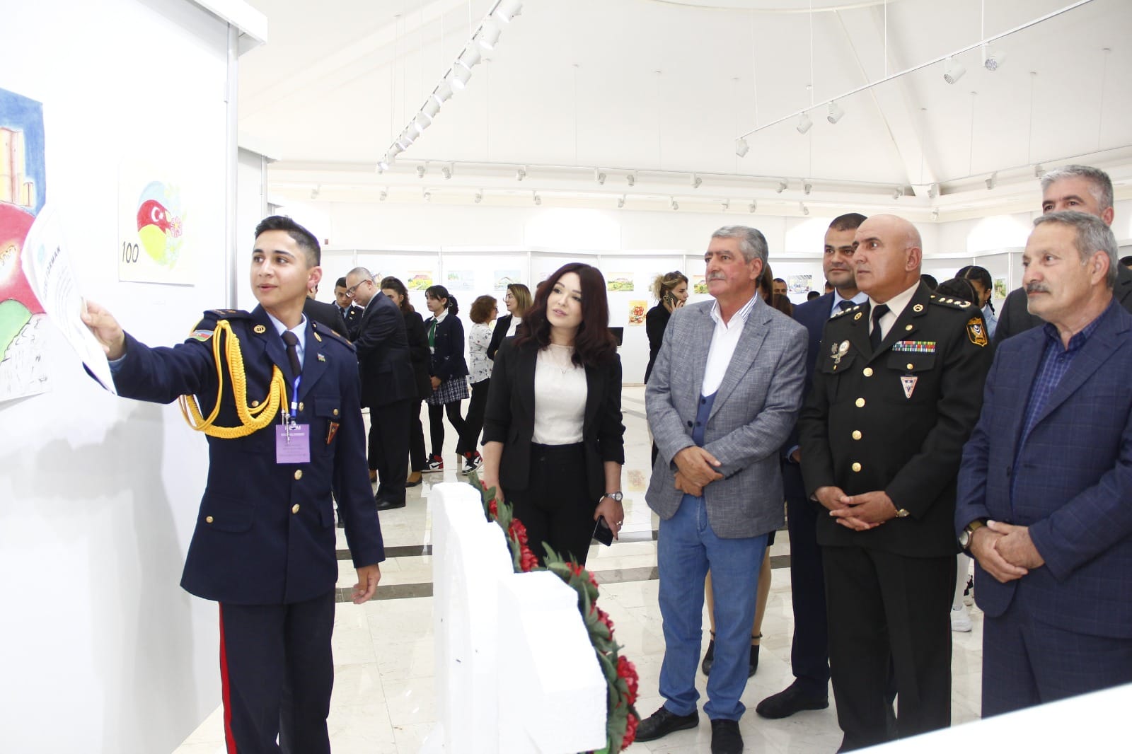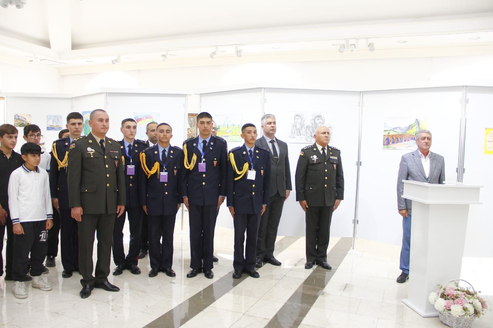 Naxçıvan Muxtar Respublikası Rəssamlar Birliyinin Bəhruz Kəngərli adına Sərgi Salonunda Ulu Öndər Heydər Əliyevin xatirəsinə həsr olunmuş Heydər Əliyev adına Hərbi Lisey kursantlarının 101 ədəd rəsm və əl işlərindən ibarət sərgi təşkil olunub. Tədbirdə ilk olaraq Ümummilli Lider Heydər Əliyevin və şəhidlərimizin əziz xatirəsi bir dəqiqəlik sükutla yad edilib. Giriş sözü ilə tədbiri açıq elan edən Naxçıvan Müəllimlər İnstitutunun dosenti, sənətşünas Nizami Alıyev bildirib ki, sərgilənən işlər içərisində həm qrafika, həm də rəngkarlıq əsərləri, eləcə də texniki yaradıcılıq işləri yer tutur. Müxtəlif mövzularda nümayiş olunan işlər arasında vətənpərvərlik mövzusunun üstünlük təşkil etməsi isə bizi daha çox sevindirdi. Biz bu gün buna daha da şahid olduq ki, kursantlarımız hərbi sirlərlə yanaşı, onlara yaradılan müxtəlif şəraitlərdən istifadə edərək yaradıcılığa da vaxt ayırırlar. Tədbirdə Heydər Əliyev adına Hərbi Liseyin rəisi Elşad Həsənov çıxış edərək təşkil olunan sərginin kollektivləri üçün sevincli bir hal olmasını vurğulayıb. Hərbi liseyin kollektivi olaraq kursantların vətənpərvərlik ruhunda tərbiyə olunması cəmiyyətimizə, dövlətimizə sağlam və Vətənini sevən gənclərin yetişdirilməsi kimi vacib tapşırığın yerinə yetirilməsi bizi qürurlandırır. Biz bu sərgi ilə həm də onu demək istəyirik ki, təhsilimizin nəticələri, digər göstəricilərimiz artıq bunu sübuta yetirir. Fərəh hissi keçiririk ki, bu gün kursantların düşüncə və bacarıqlarını geniş kütləyə təqdim edirik. Naxçıvan Muxtar Respublikası Gənclər və İdman Nazirliyinin Aparat rəhbəri İlhamə Nəzərova tədbirdə çıxış edərək bildirib ki, bu gün Azərbaycanın zabiti olmaq və bu ölkənin hərbi sistemində onun ərazi bütövlüyünü, onun suverenliyini qorumaq üçün inamla irəliləyən hər bir gənc ölkəmizin gənclər siyasətinin ən bariz və uğurlu örnəyidilər. Naxçıvan Şəhər Gənclər və İdman İdarəsinin rəisi Tahir Məmmədli bildirib ki, Ümummilli Lider Heydər Əliyevin adını daşıyan hərbi liseyin kursantları nəinki rəsm əsərləri ilə, digər sahələrdə də öndə gedirlər. Onlar mütəmadi olaraq müxtəlif yarışlara qatılıb mükafatlara layiq görülürlər.
