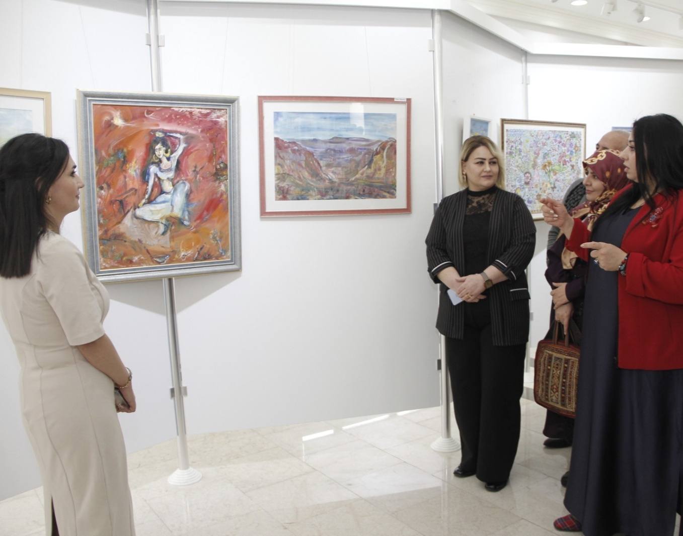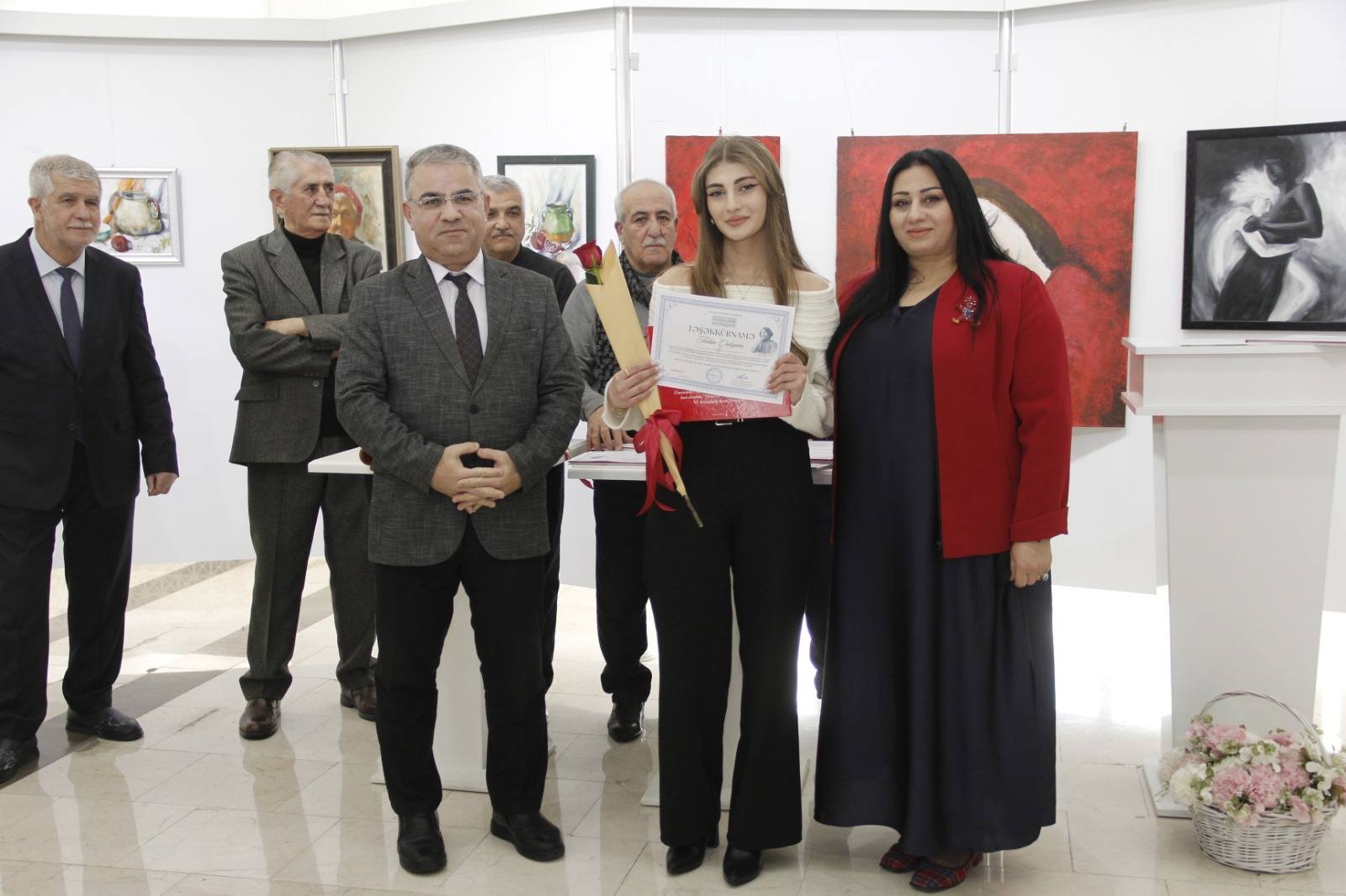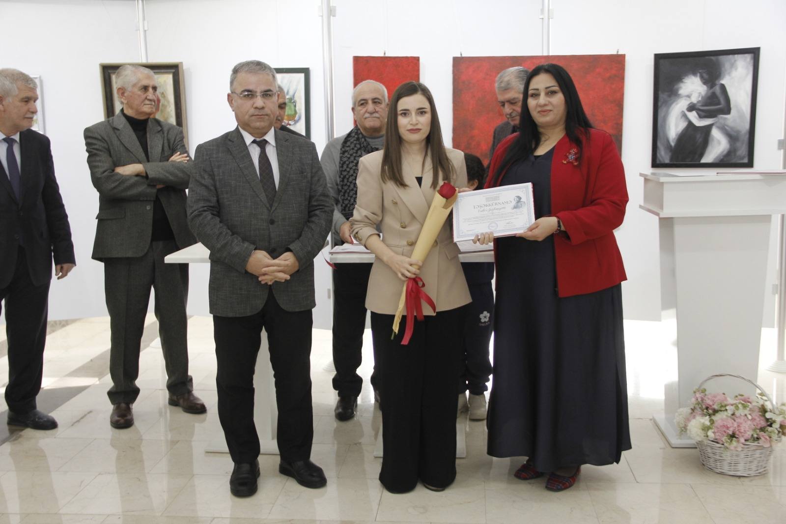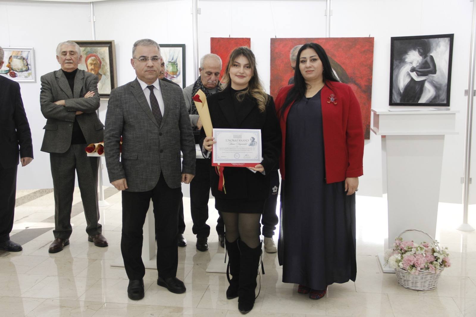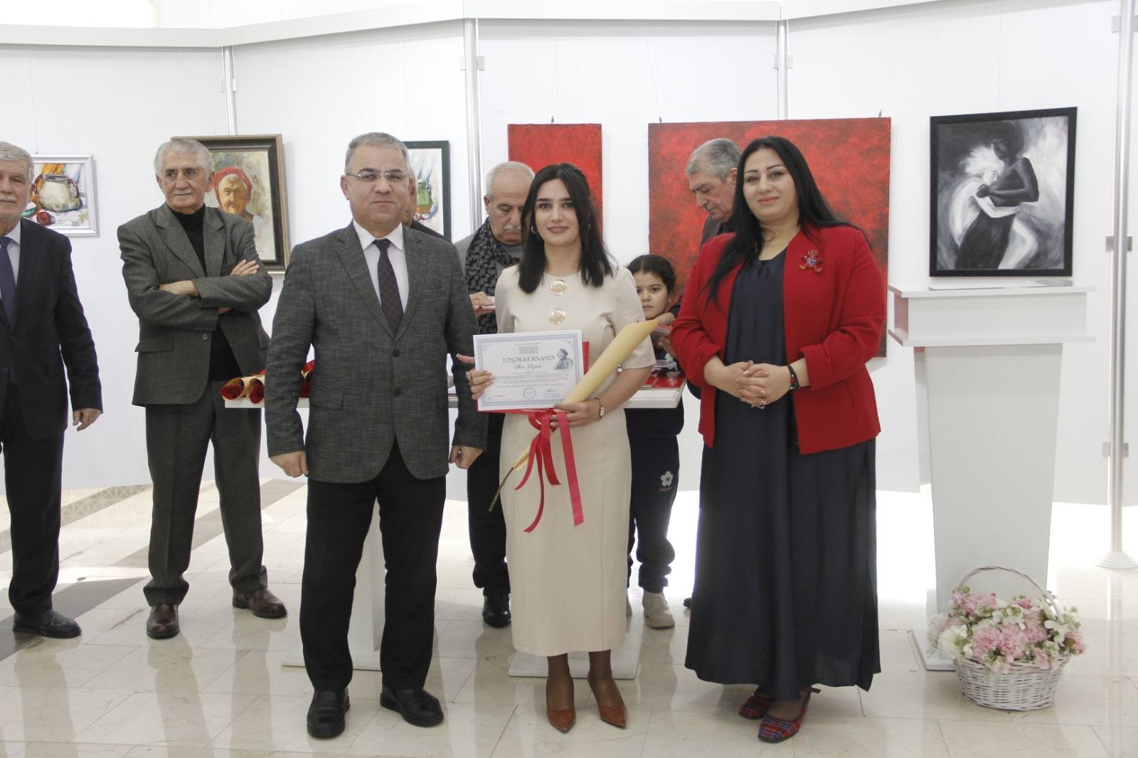 Sonradan çıxış edən Rəssamlar Birliyinin üzvləri, mötəbər qonaqlar və gənc rəssamların ailə üzvləri